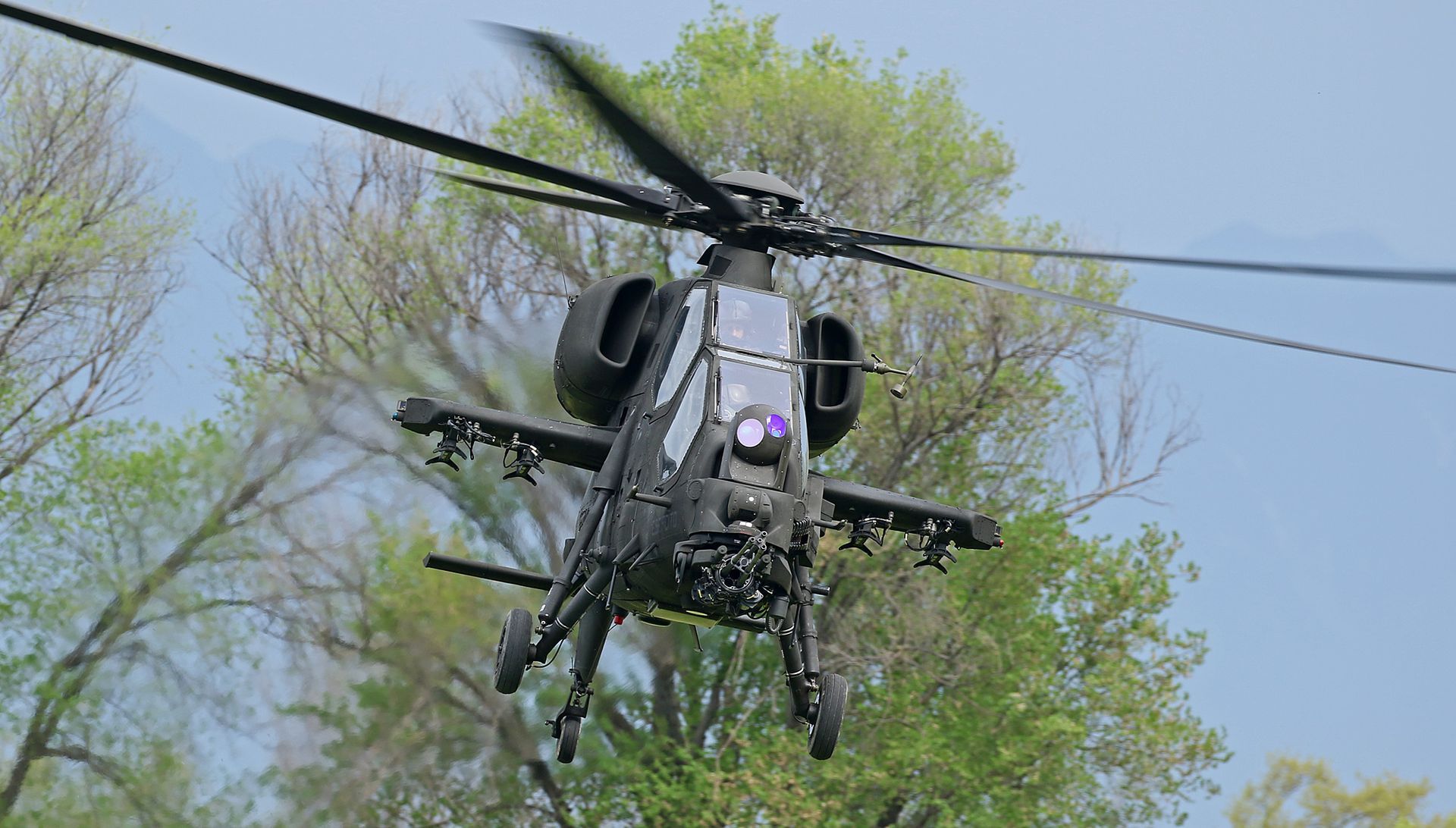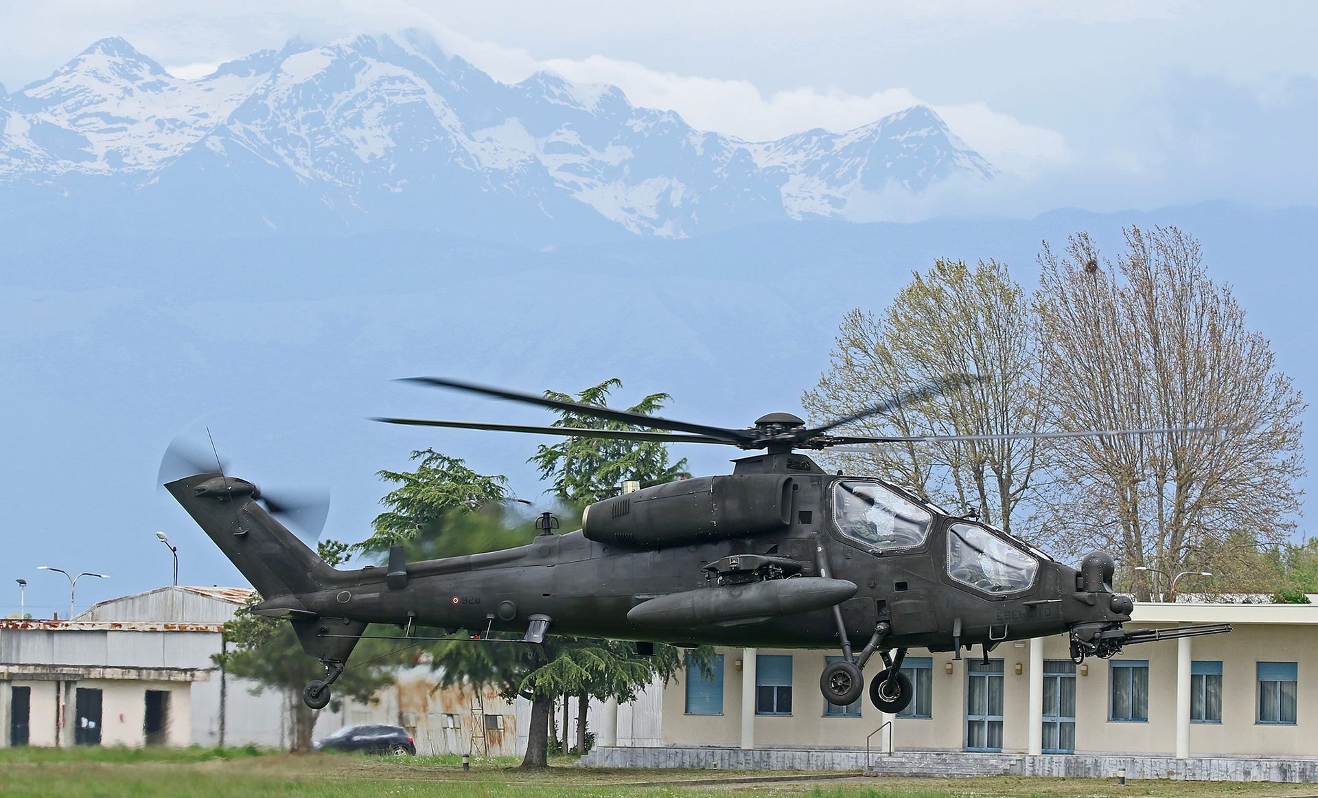 The A.129 can carry tanks to extend its range (particularly useful for ferry flights to ‘the front line’). There is limited space on the left-hand side for crew items, so on deployment, it typically carries an auxiliary pannier. The take-off weight is 4,600 kg. There are four hardpoints enabling a variety of weaponry to be carried. These might be Hydra unguided rockets (four per pod), the Spike missile (a guided anti-tank missile with an 8 km range), air-to-air missiles such as the Mistral or Stinger, or two 7.62mm gun pods, each with 300 rounds.