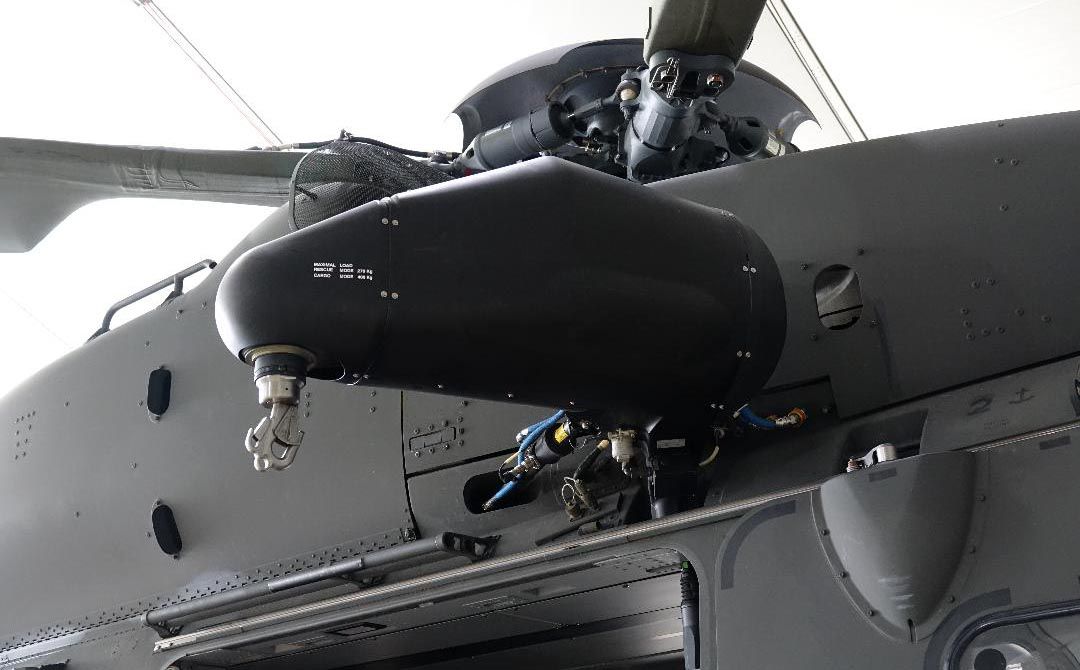 The helicopter is equipped with a hook, winch, and hoist, and it can also be adapted for firefighting. Its NVG capability has proven useful for flying in low cloud and fog, and the infrared capability within the helmet has been invaluable.