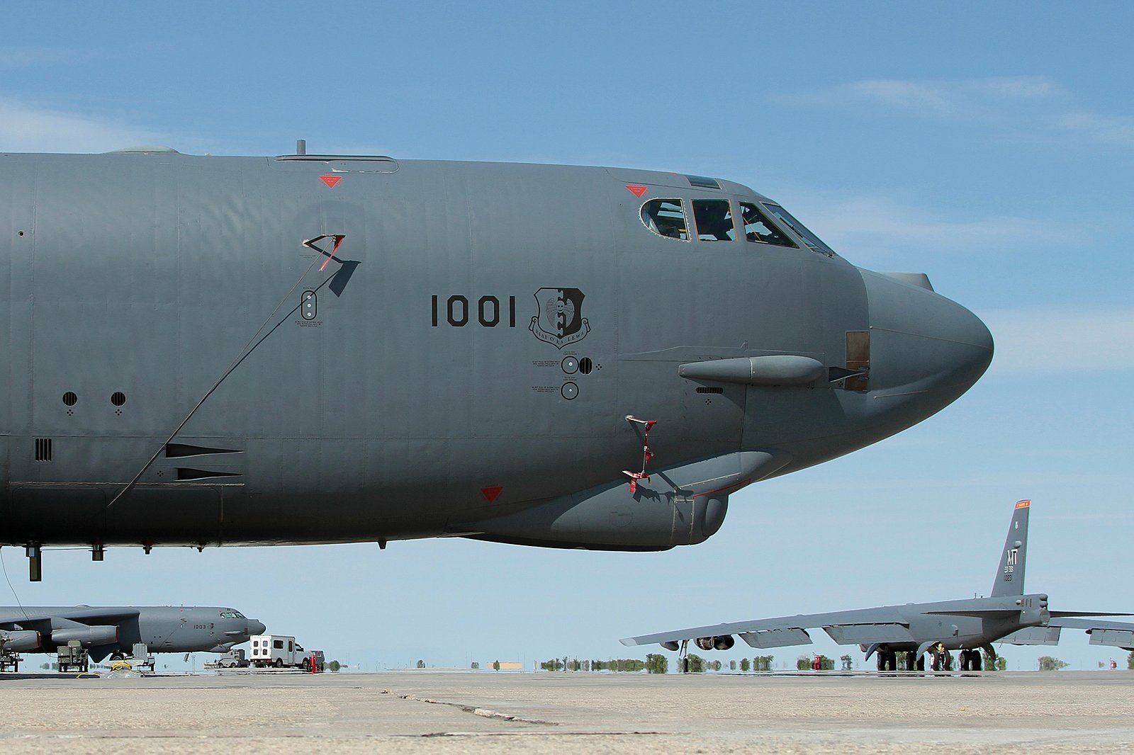 Assigned to both squadrons are 25-30 B-52Hs and these can often be seen deployed around the Pacific region and to the UK at RAF Fairford. The B-52H Stratofortress is a long-range, nuclear and conventional heavy bomber that can perform a variety of missions. The bomber can fly at high subsonic speeds at altitudes reaching 50,000 feet. It has an unrefueled combat range in excess of 8,800 miles. The B-52H can carry precision guided ordnance with worldwide precision navigation.